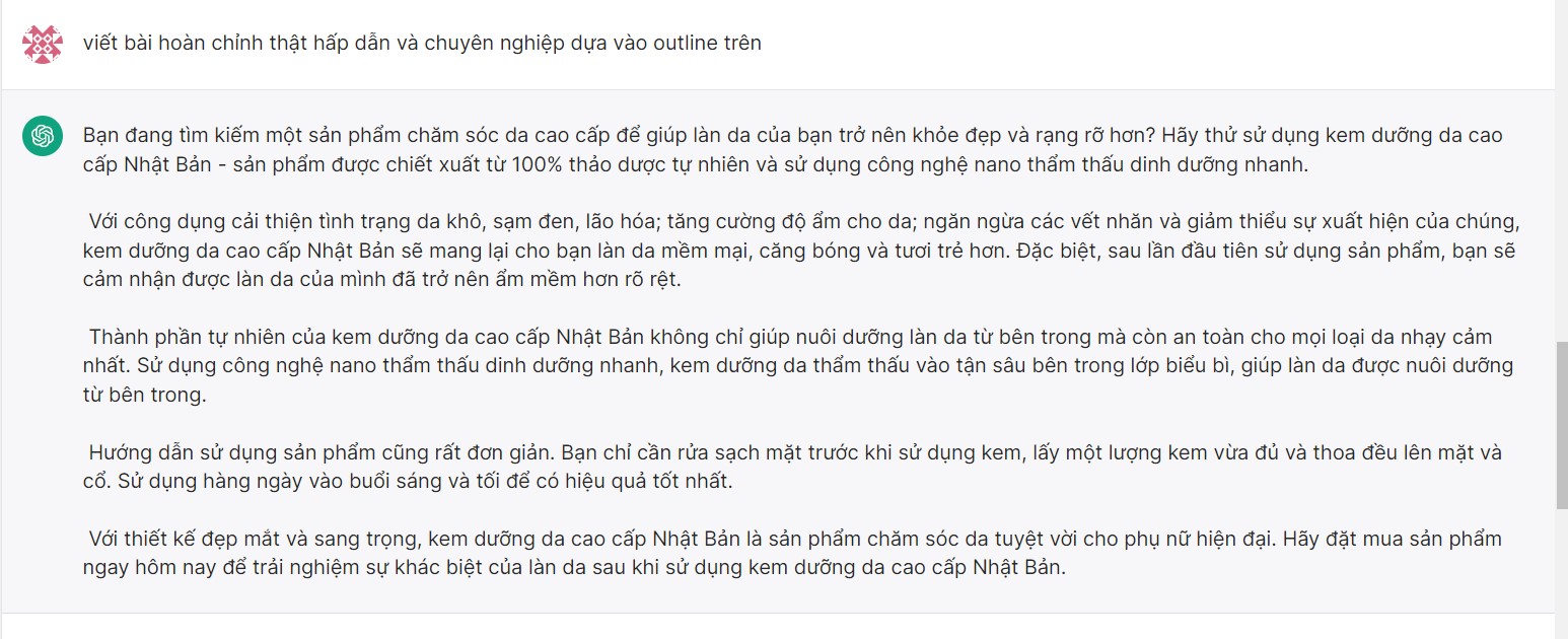 Viết outline bài quảng cáo về [kem dưỡng da cao cấp Nhật Bản] theo cấu trúc AIDA