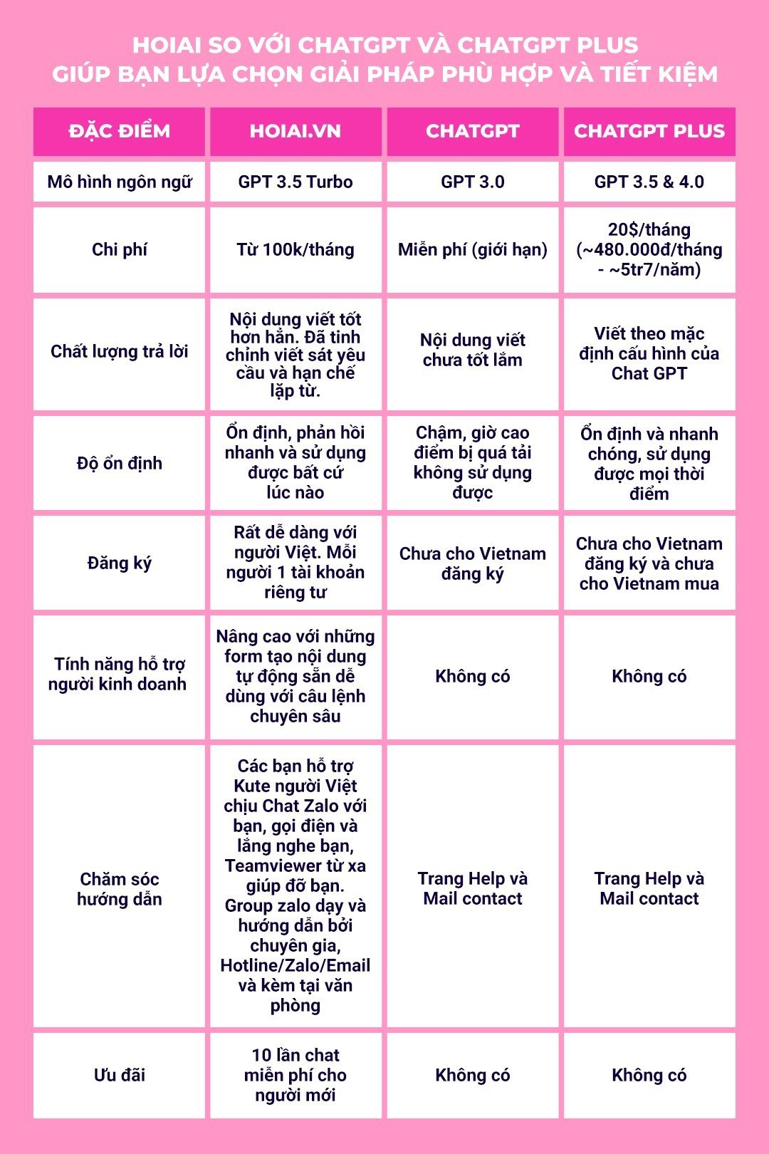 HOIAI so với ChatGPT và ChatGPT Plus - Giúp bạn lựa chọn giải pháp phù hợp và tiết kiệm